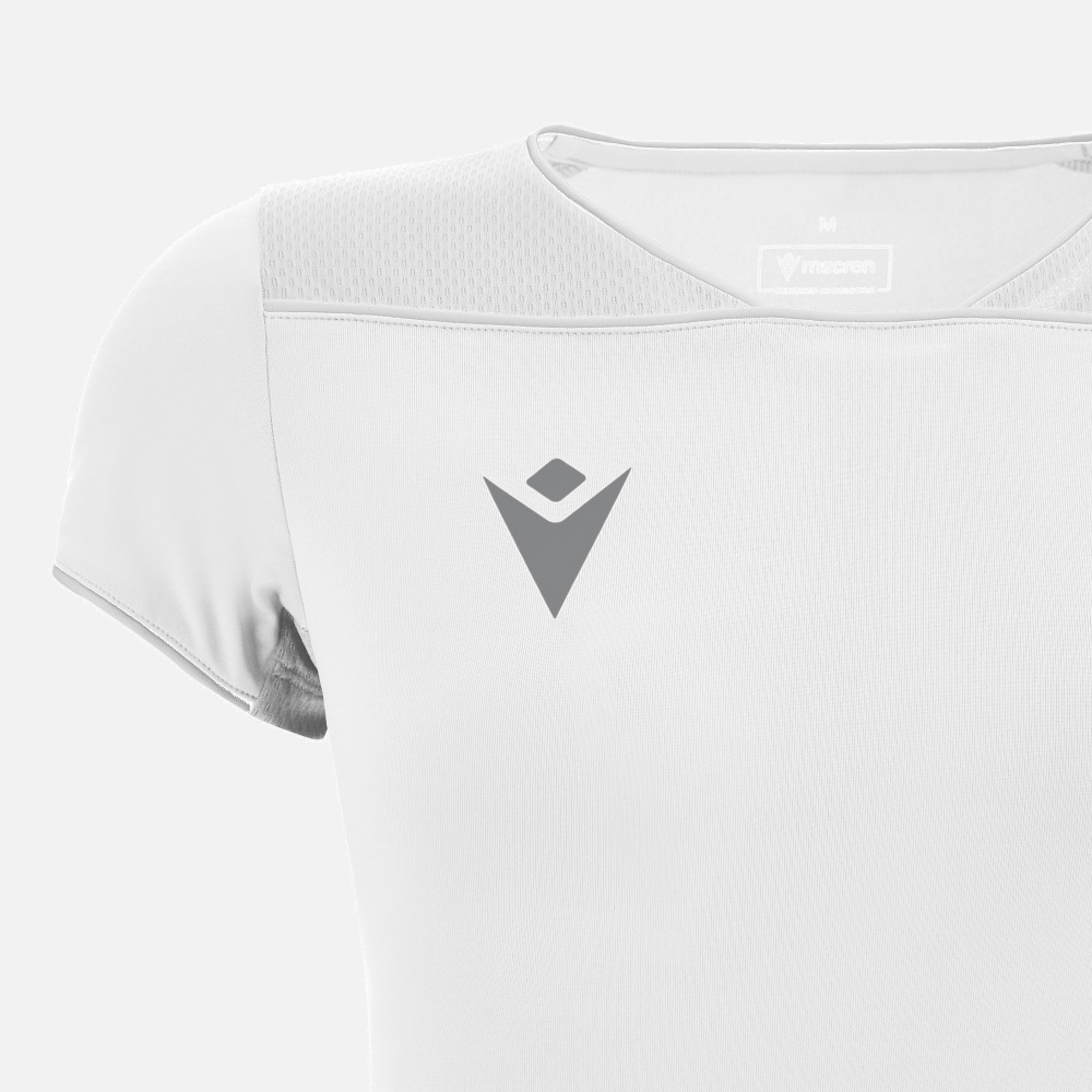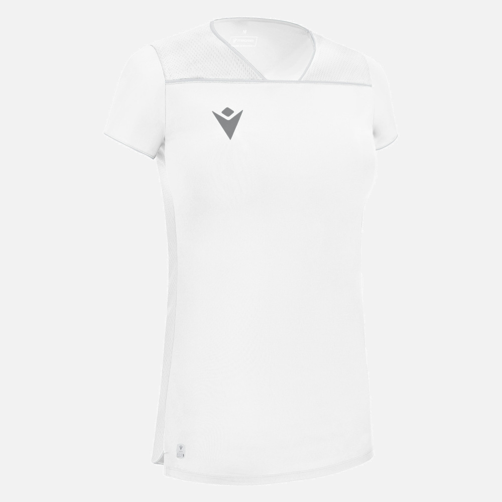 Ігрова футболка Steel Eco - жіноча футболка повністю виготовлена з тканини Eco Fabric Stretch, отриманої з 100% переробленого ПЕТ, з V-подібним вирізом, підкресленим контрастною окантовкою, яка також підібрана на передній кокетці. Вставки з легкої мікросітки з боків і плечей покращують повітропроникність. Контрастна окантовка на манжетах. Характеристики: