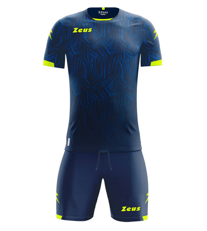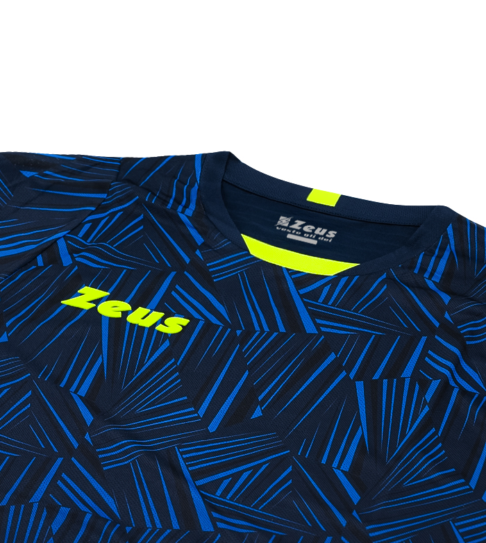 Naxos - спортивна форма, що складається з футболки з короткими рукавами та сублімованим друкованим візерунком, що поєднується з шортами. Дизайн доповнюють вставки на рукавах та комірі, присутні як спереду, так і ззаду. Логотипи Zeus з силікону.